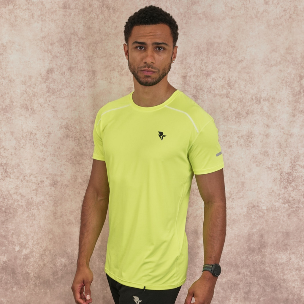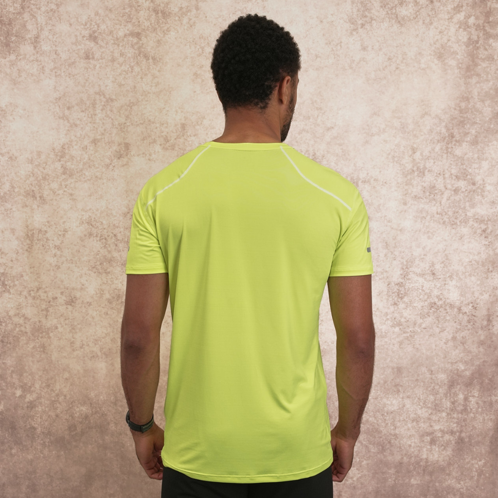 Made with a soft and lightweight polyester fabric, this T shirt is made to keep you comfortable and fresh on your run. The material stretch gives the T shirt a fitted feel that hug the body and results in sweat-wicking comfort and accelerated performance.