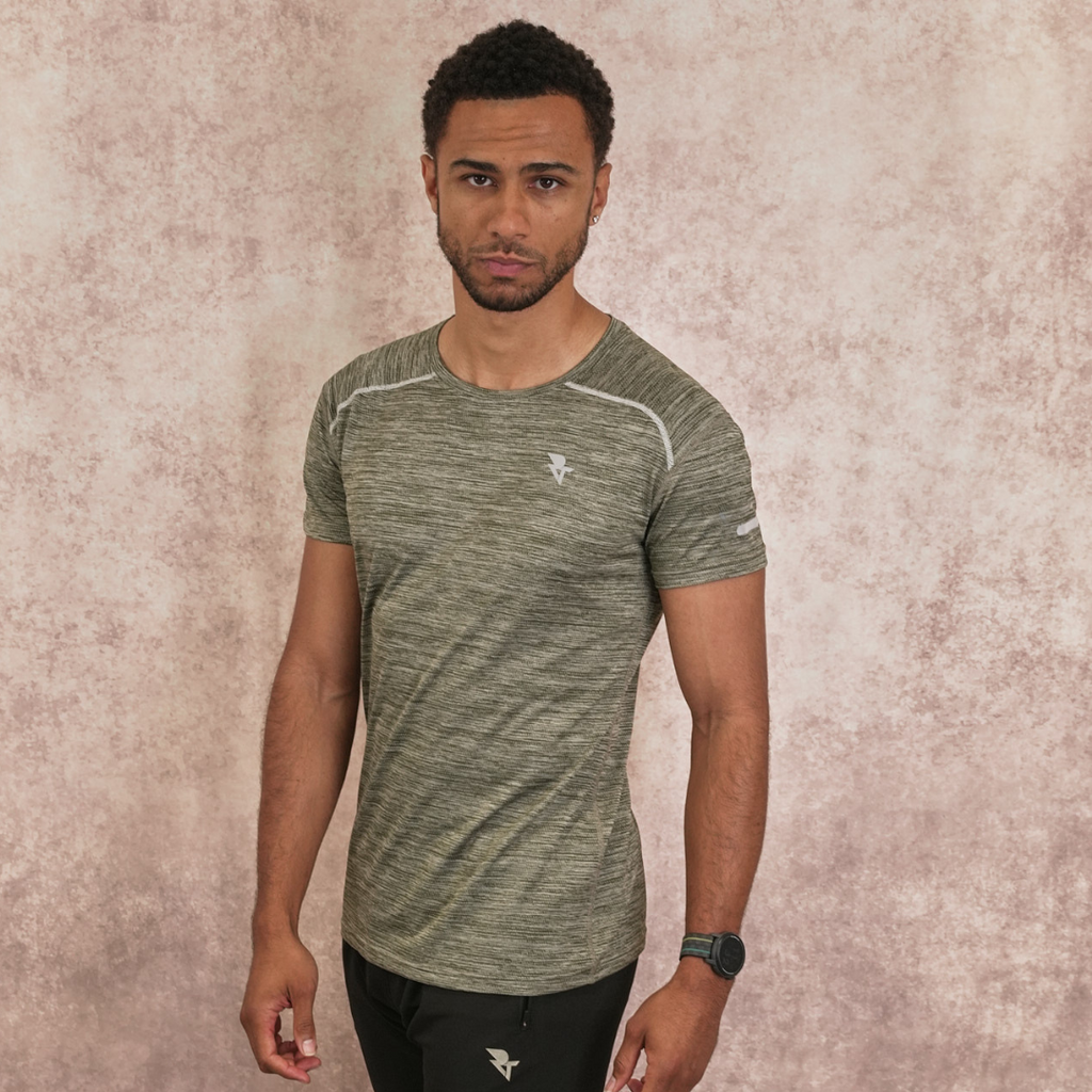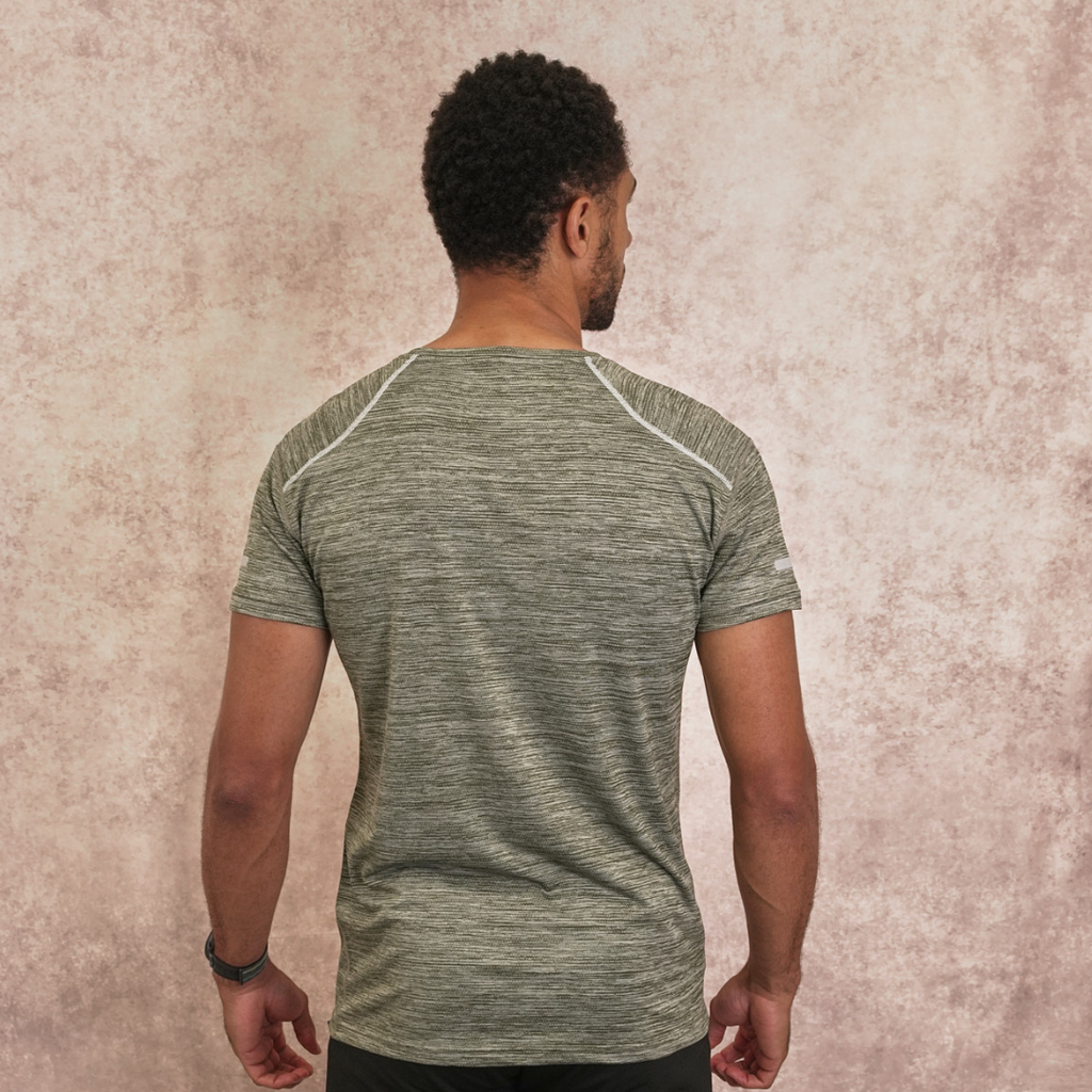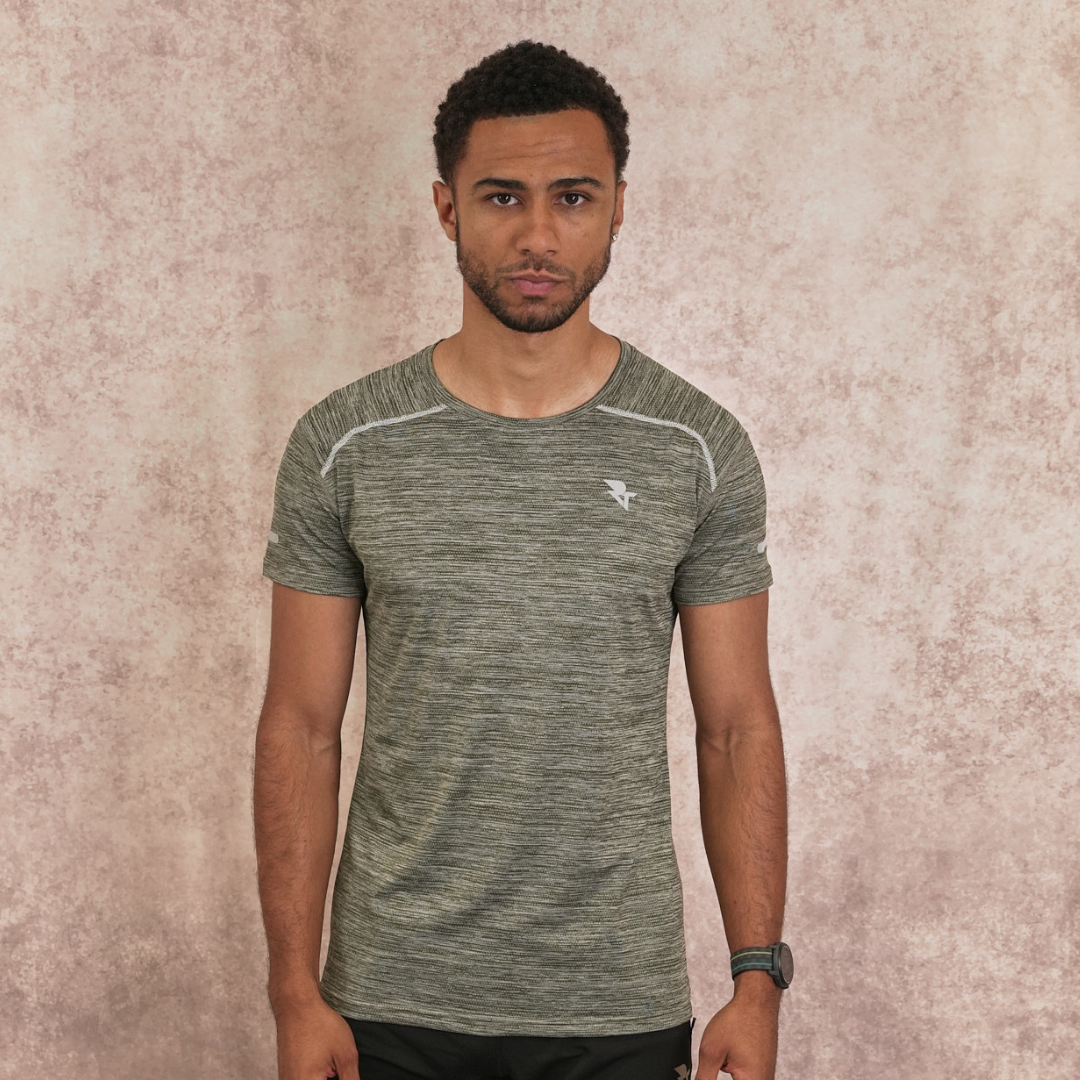 This is a semi-fitted performance t-shirt made with a breathable and lightweight polyester & spandex fabric, this t-shirt is designed to keep you cool, dry, and comfortable on every run. The added stretch delivers a responsive fit that moves with you