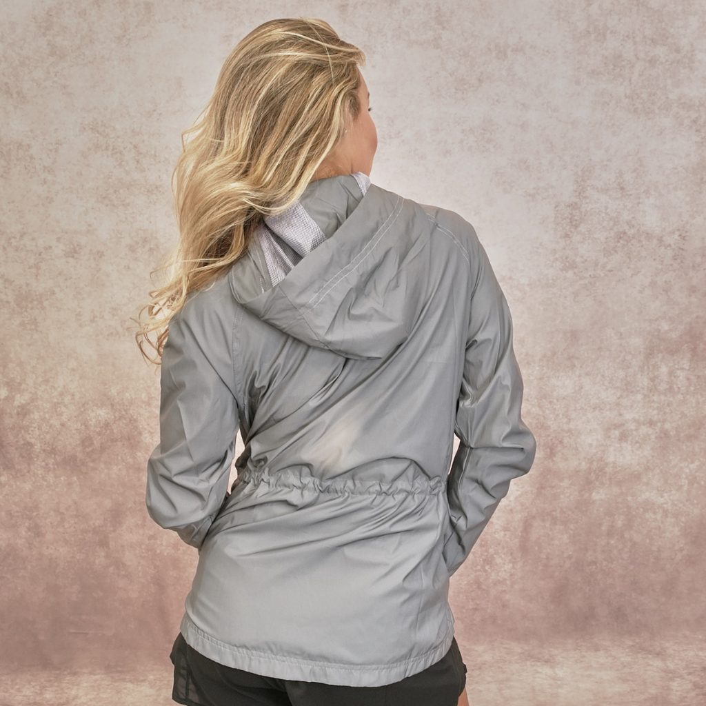 A full zip open jacket with adjustable hood and thumb holes. Made with a high visibility, reflective 3M material, you can’t hide in this jacket. The material is light and free allowing you to focus on workout whilst keeping cool and visible. With this jacket, there will be no stopping you!