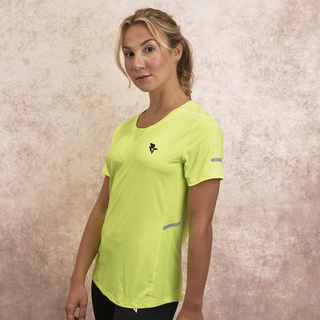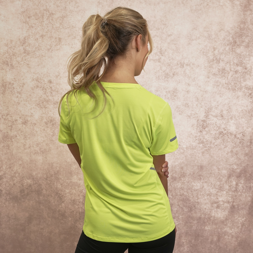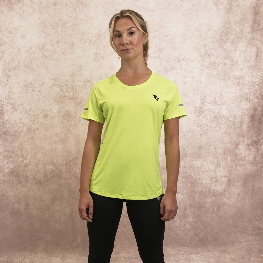 Made with a soft and lightweight polyester fabric, this running T-shirt is made to keep you comfortable and fresh on your run. The material stretch gives the T-shirt a fitted feel that hugs the body and results in sweat-wicking comfort and accelerated performance.