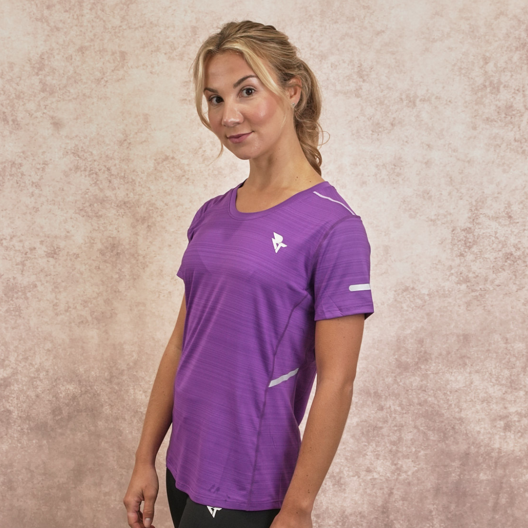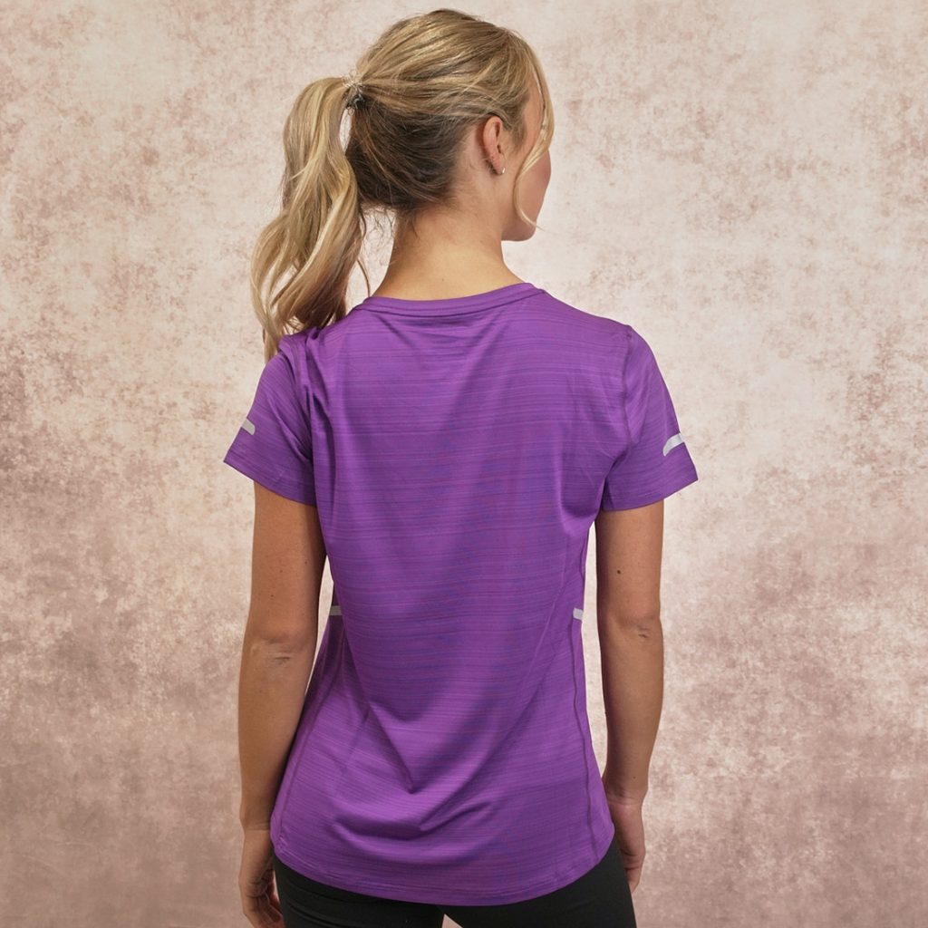 Made with a soft and lightweight polyester fabric, this running T-shirt is made to keep you comfortable and fresh on your run. The material stretch gives the T-shirt a fitted feel that hugs the body and results in sweat-wicking comfort and accelerated performance.