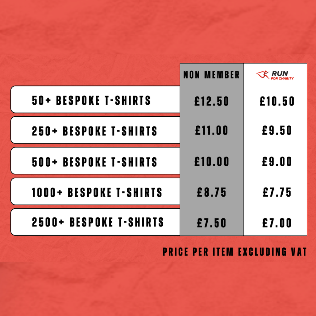 Custom branded charity running t-shirts, male, female and unisex sizing 3XS - 4XL
