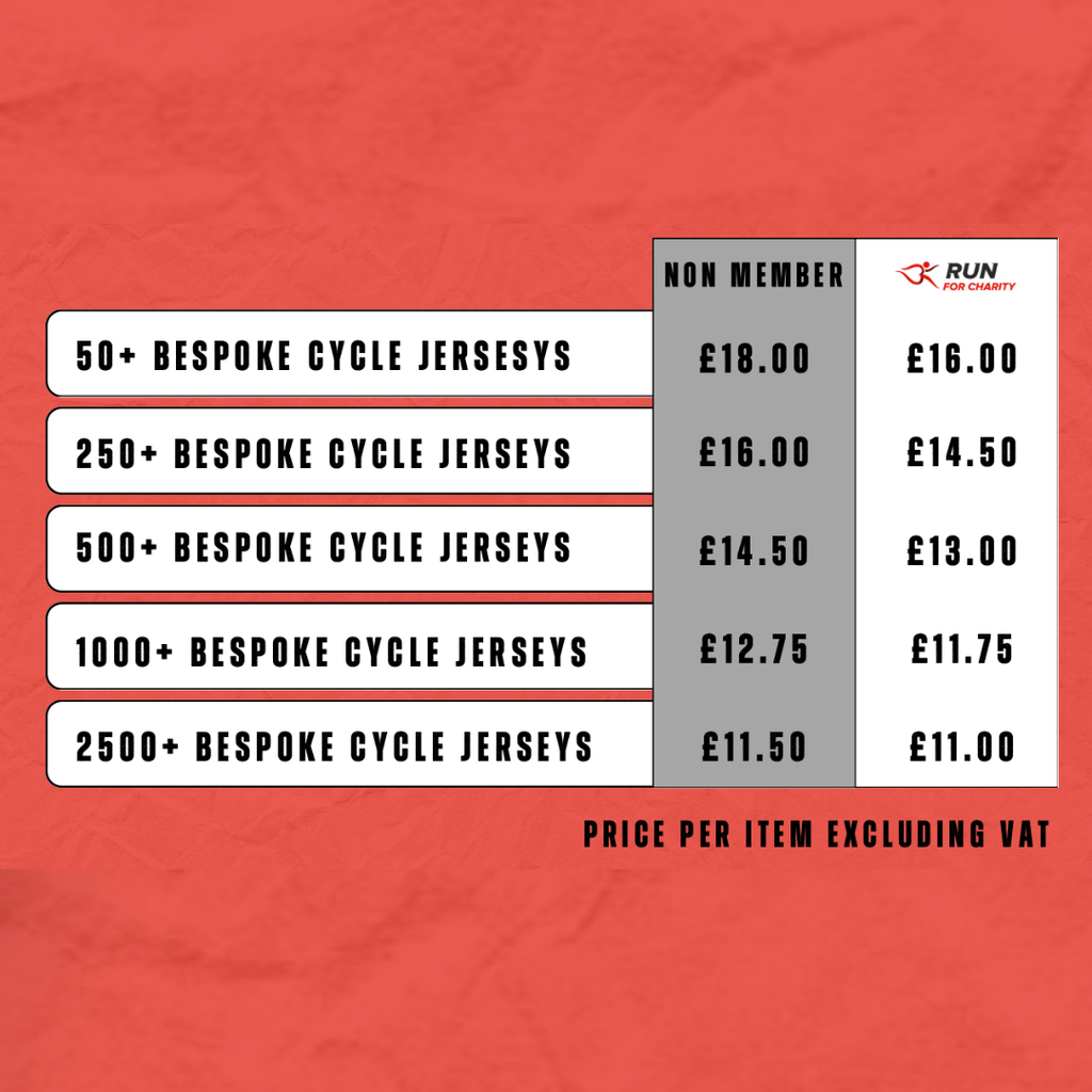 Custom branded charity cycle jerseys, unisex sizing 3XS - 4XL