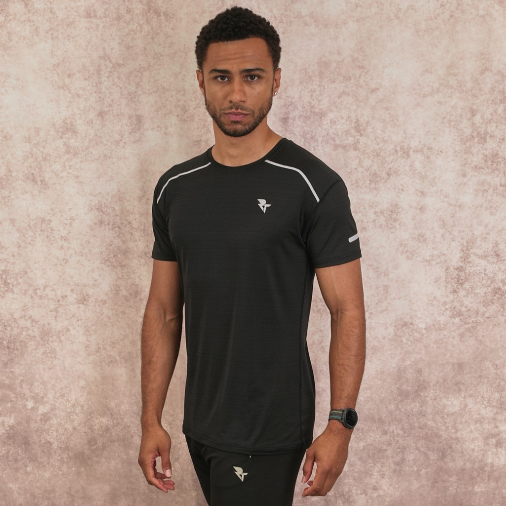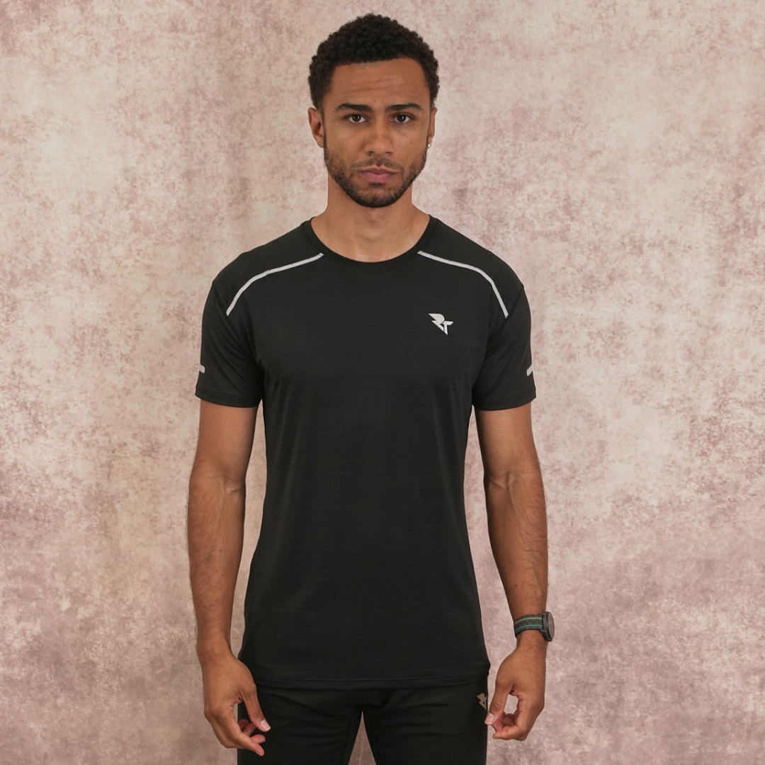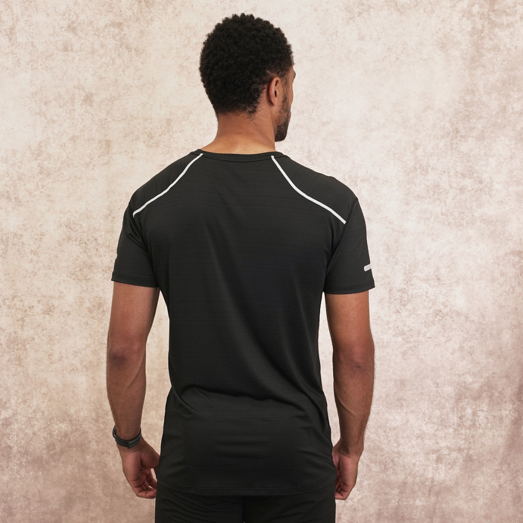 Made with a soft and lightweight polyester fabric, this T shirt is made to keep you comfortable and fresh on your run. The material stretch gives the T shirt a fitted feel that hug the body and results in sweat-wicking comfort and accelerated performance.